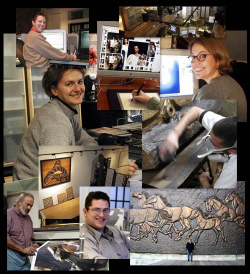 Over the past 10 years, Lars Justinen and his award-winning team of artists has developed a low-cost, light-weight faux bronze process. These bronze applications are beautiful and extremely durable in interior or exterior locations. Our experience as illustrators and designers will ensure that your vision comes to life, whether it is a 25' X 100' public relief sculpture or simply your logo for a trade show. Contact: art@jcg.com |